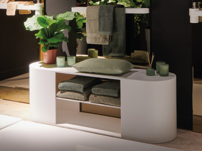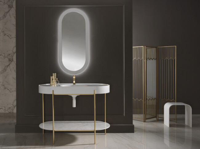 Per ottenere prodotti di alto livello è necessario partire da materie prime nobili. Brera ha selezionato, per le proprie collezioni, soltanto ingredienti di base che rispondano ai più alti standard qualitativi. ICONA è la nuova collezione di Brera realizzata coniugando l’eleganza dell’oro con l’essenzialità estetica scelta da Bizzarri Design. La pietra acrilica permette ad Icona di mantenere una versatilità sartoriale delle superfici di appoggio con un design leggero ed elegante.